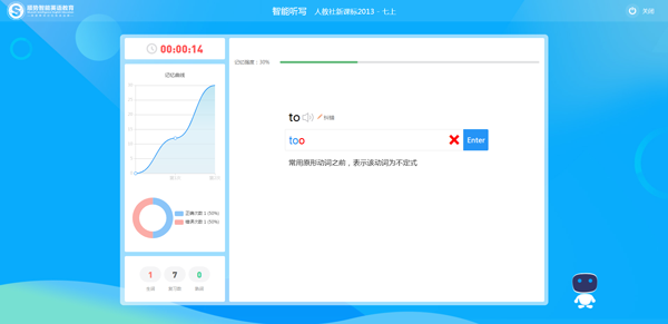 完全同步教材内容,针对性学习。利用“顺势记忆引擎+人工智能自动导航系统+语音识别及测评技术”精准运算记忆曲线,达成母语式记忆效果。