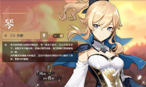 身为西风骑士团的代理团长,琴一直忠于职守,为人们带来安宁。虽然并非天赋异禀,但通过刻苦训练,如今的她已然能够独当一面。
