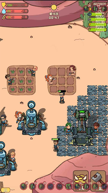 食物:建造农田,越早解锁种植系统,越能长期自给自足。