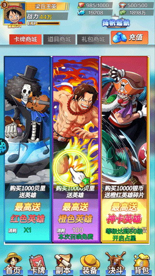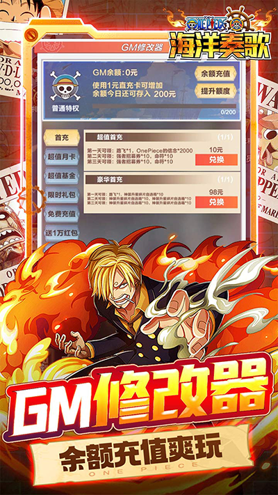 海洋奏歌0.1折版是一款以航海王动漫为背景的轻度挂机卡牌游戏,游戏高度还原的动漫剧情、还有挂机式的卡牌战斗玩法、多样化的副本探索以及激烈的PVP对战在这里玩家需要收集各种卡牌,通过战斗不断提升自己的实力,挑战各种强敌,成为真正的海贼王。每个卡牌都有着不同的属性和技能,玩家需要根据自己的策略和情况来选择合适的卡牌,制定出最佳的战斗计划。并且玩家登录游戏后,既可享受永久0.1折的充值折扣优惠,喜欢航海王题材和策略游戏的玩家,千万不要错过哦,欢迎来本站下载游玩!