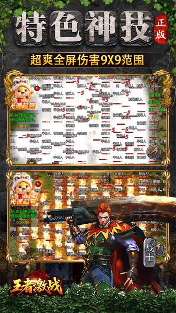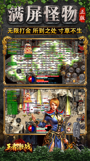 王者激战传奇手游内所有野外地图无付费限制与特权要求,真正做到绝对自由,不卡散人。高级装备全靠打怪掉落,小怪也能爆终极装备,全民追梦拼人品。BOSS挑战性强且爆率更高,抢夺过程激情无限。酷炫时装、幻武、足迹等外观与属性兼具的装备均由BOSS掉落,等待玩家收集。2025全新版本更推出三职业灭世神技,怪物刷新数量翻倍,横推刷怪,遍地光柱,回归传奇本质,主打升级、打宝、PK,轻松简单自由!