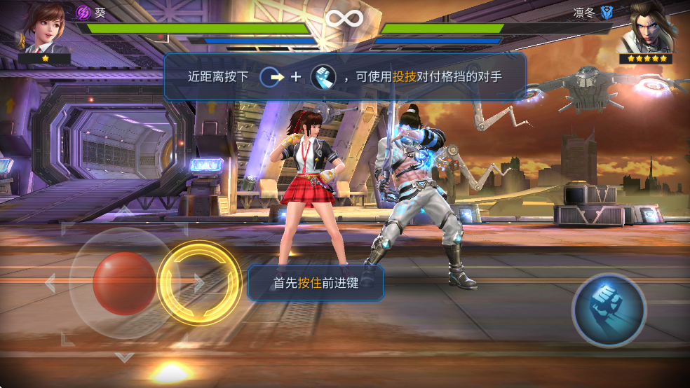 5、按住向前的方向键的同时点击进攻键,可以使用投技对付格挡的对手
