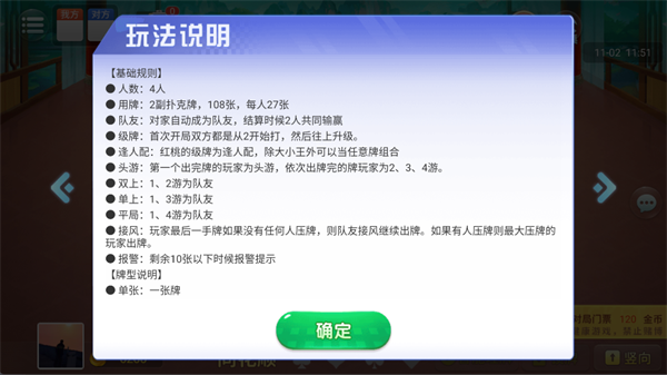 新手教程也挺简单,登录签到就能拿到金币,还有各种场馆可以选择,像麻将馆、扑克馆什么的,界面设计还挺直观的。里面的规则说明也很清楚,适合刚开始接触棋牌的新手。不过玩的时候要注意合理出牌和配合队友,有时候还要看队友的默契度。