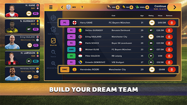 1、探索逼真的转会市场,从世界顶级球员中挑选,打造您的梦之队。
