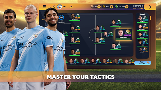 2、调整您足球俱乐部的战术,让您的11名球员发挥出最佳水平,并通过全新的Match Motion引擎,在球场上观看他们的精彩表现,感受令人惊叹的3D足球动作。