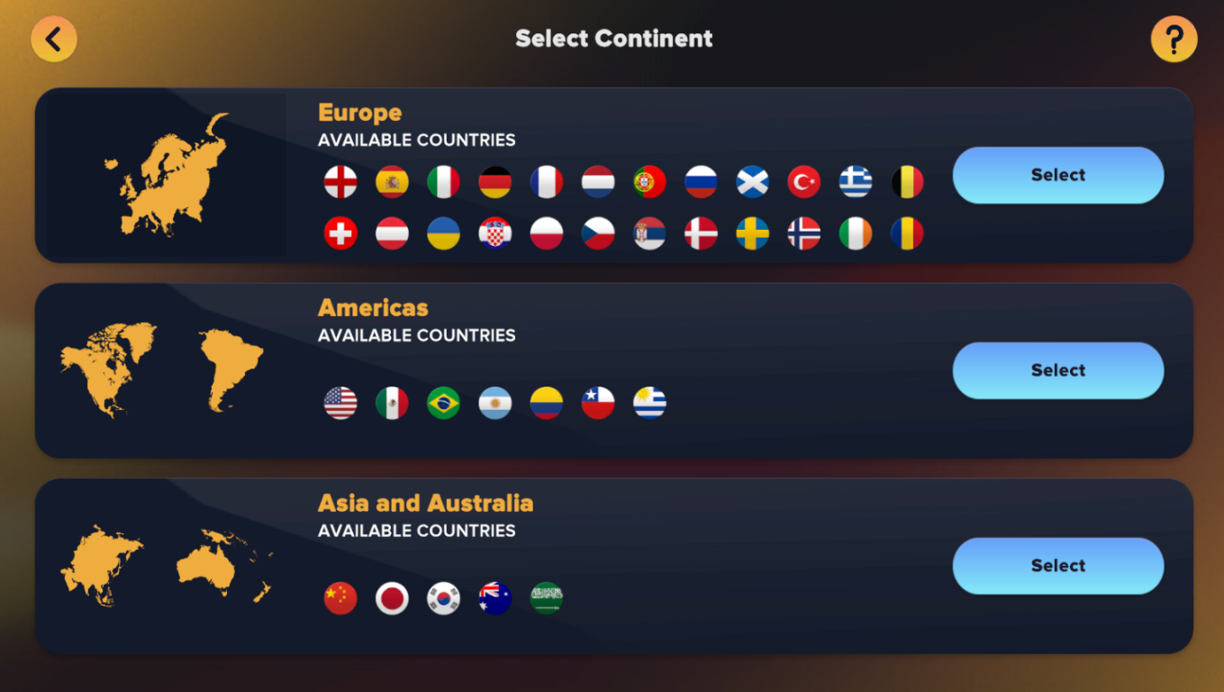 SM25包含来自90多个联赛的900多家俱乐部。征服梦想联赛后,带领你的俱乐部在洲际赛场上再创辉煌,成为欧洲或南美冠军。成为世界顶级国家的国际足球经理,将你的技能推向全球。