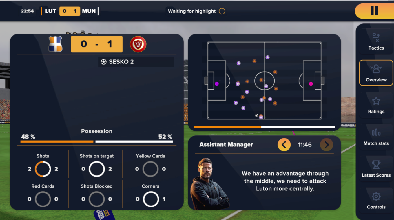 7、胜利不仅仅取决于进球数——分析比赛数据能揭示需要改进的地方。总览标签页显示控球率、射门次数和助理教练的建议。热力图突出显示集中比赛的区域,帮助你调整阵型或压迫强度。如果一名边锋评分较低,就替换他或调整他的角色。这些细节能在整个赛季中积累战术优势。