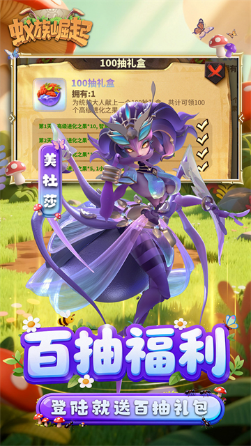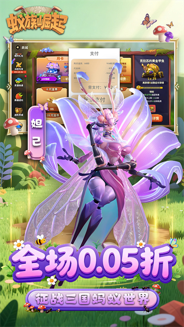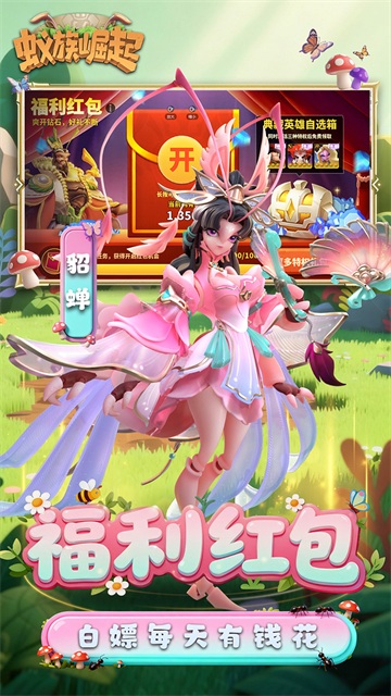 这款游戏叫《蚁族崛起》,是一款策略塔防类型的手机游戏。上线就有各种福利,比如首充折扣低至0.05折,登录七天还能领郭嘉这样的强力武将。画面特别精致,用了3D引擎技术,故事背景也很有意思:一群蚂蚁吃了神树的果实觉醒了,开始为争夺果实打起仗来。