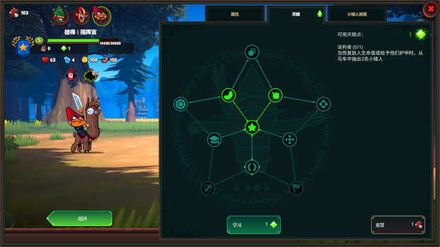 根据喜好增加,并不重要,可以选择闪避或者生命来提高存活能力,或者增加力量,但要注意,你需要投入很多点数才能增加1点伤害。我选择了增加暴击,除了提高伤害效果,也可以通关弹弓射手暴击的效果让敌人中毒,这就是我不带暴击效果矮人的原因。