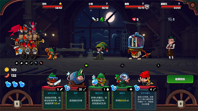 你需要做的只是用毒骑士让离你最近的敌人中毒,用弹弓射手或者毒师让任何位置的敌人中毒,用双枪矮人抽卡,用顽固老警卫和魔法兄弟强化生存能力,回复魔法值。这很简单。