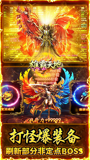 《雄霸天地(176封神复古)》是一款经典三职业微复古传奇手游,游戏装备全靠打,任何地图都有机会爆出终极装备和特殊顶级装备。游戏取消了“查询怪物刷新时间功能”,并增加了非定点BOSS的刷新机制,旨在防止土豪包场影响散人玩家的发育。