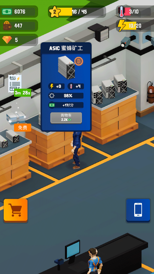 2、作为加密货币挖矿大亨,你将战略性地升级矿工,优化挖矿技术,并最大化你的利润。这个游戏提供了一个引人入胜的体验,需要你积极玩耍以取得进展。看着你的挖矿帝国成长,自动化你的操作,达到新的成功水平。