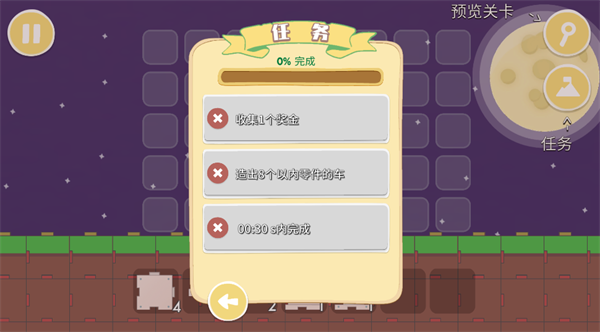 4、根据任务的指示造出8个以内零件的车,每一关的内容都是不一样的