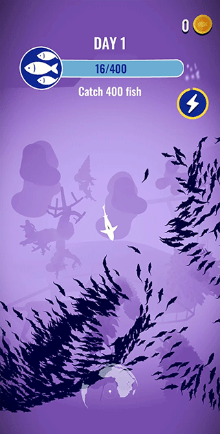 深海鱼群英文名称叫做Shoal of fish是一款清新治愈的深海捕鱼手机游戏,水墨风格的画风,独树一帜的捕鱼玩法,让人眼前一亮。在这里玩家将化身一条饥饿的鲨鱼在鱼群风暴里捕食,游戏中有着大量的鱼群等着你来捕捞,通过吞噬鱼群来让自己升级,不同的鱼有不同的特征,玩家可以使用它们来提高自己的能力,没有血的时候,还可以补充血液。同时留意身边的大鲨鱼,别被它们逮住,比较考察您的观察和反应能力,刚兴趣的小伙伴可以下载开始捕猎,潜入最放松的游戏,去发现深海的魔力。