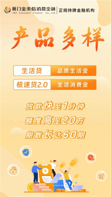 金美信金融又称金质花,是一款借钱软件。软件功能齐全,便捷,安全性高。适用投资、理财、贷款等金融功能,盈利平稳,足不出户申请,满足用户贷款要求。此外,金美新的消费信贷可以通过手机迅速审批,贷款年限灵便,缓解了你的财务压力,利率低,成本低,帮助你处理经济压力,一站式解决财产难题。您可以凭有效证件办理贷款。APP网上申请速度快,最容易贷款20万元。