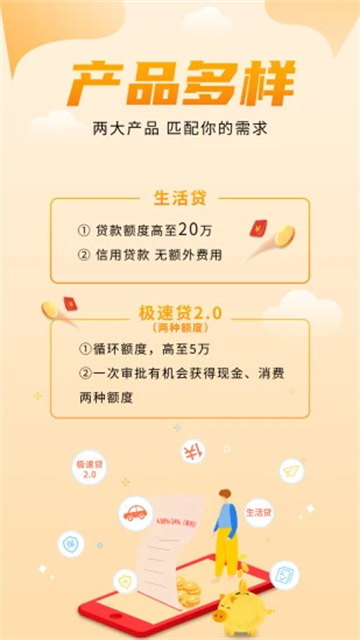 用这款软件的话,流程挺简单的:先下载app,打开后直接申请借贷就行;想分期购物也能在软件里操作;借钱页面有很多选择,根据自己的需求选就行了;还能在“我的”板块查到详细的借款信息。它的特色包括手续简便、额度高(最高20万)、还款期限灵活(3-60期)、费率透明(没有手续费)以及放款速度快(最快半小时到账)。最近更新的版本还优化了一些流程,修复了之前的问题。