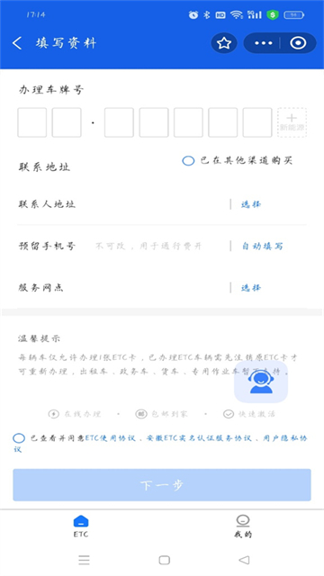 6、然后填写需要办理的车牌号和个人信息,点击下一步提交,等待办理通知就好了。