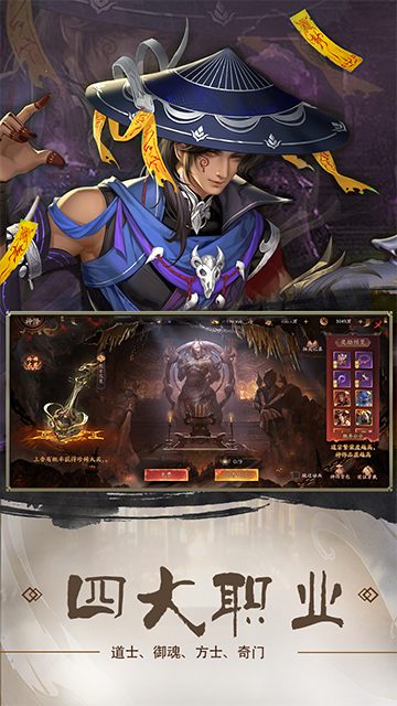 游戏有四个职业:道人、御魂、方士、奇门,各有特色。提升实力的方法包括骑宠升星、道术升级、妖鉴附身和神君升级。我觉得这款游戏挺有意思的,既有传统文化元素,又有策略性和动作感,剧情也吸引人。