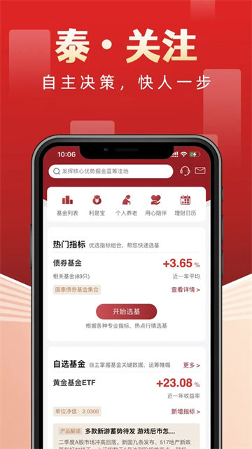 国泰基金App是国泰基金管理有限公司官方出品的一款移动端基金交易软件,集基金产品查询、基金交易、现金管理等多种功能于一体,为您提供高效便捷的随身理财服务,满足您全方位理财需求。
