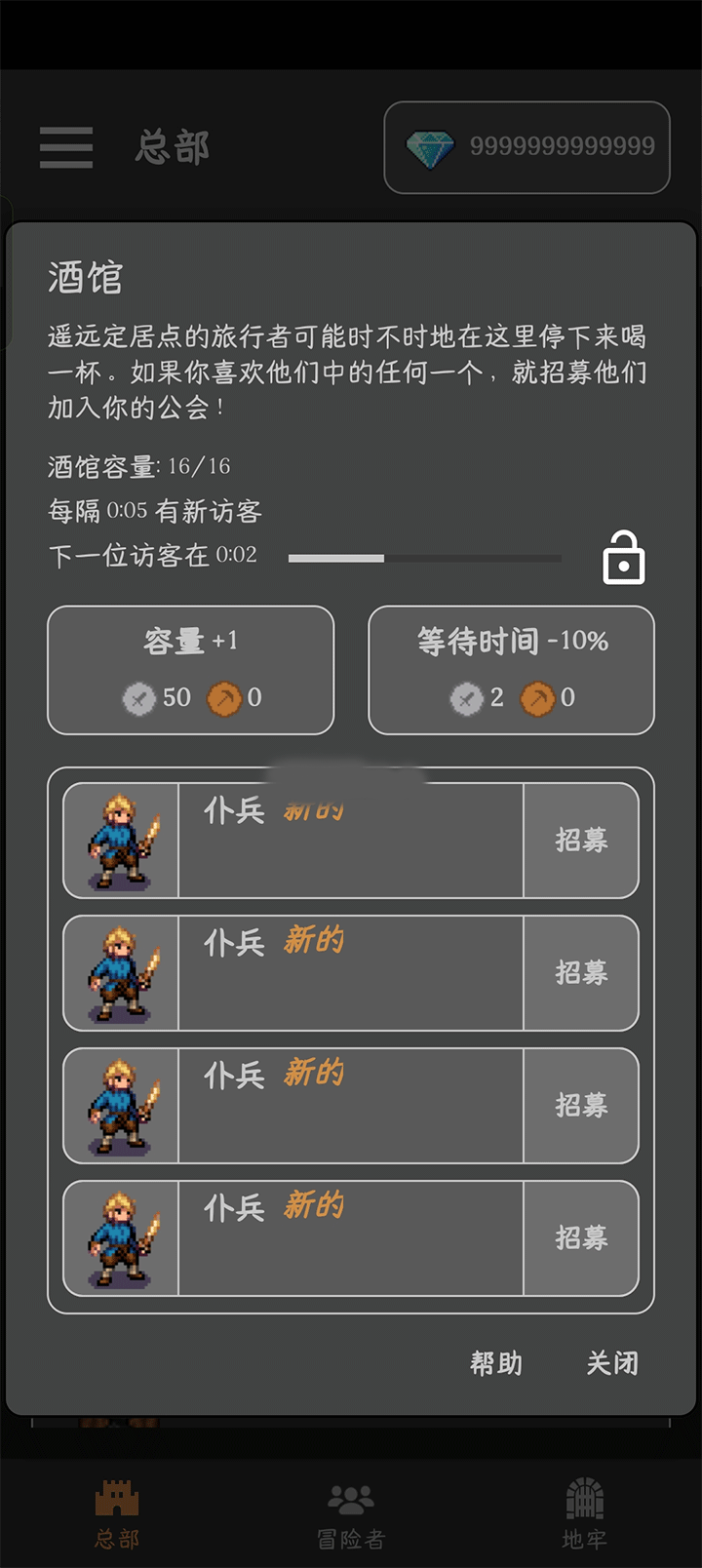 《公会会长》是一款挺有意思的放置地牢冒险游戏,玩法简单又轻松。作为会长,我主要负责招募和培养冒险者团队,然后让他们自动去刷地牢打宝。游戏里有70多种职业可以选择,每个职业都有独特的技能,可以自由搭配,这点我觉得特别有意思。玩的时候不用一直盯着战斗过程,设置好队伍后就可以躺着收奖励,真的很省事。