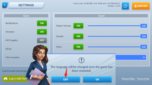 3、然后会要提示弹出,大概就是说重启后语言就会切换了,点击exit退出。