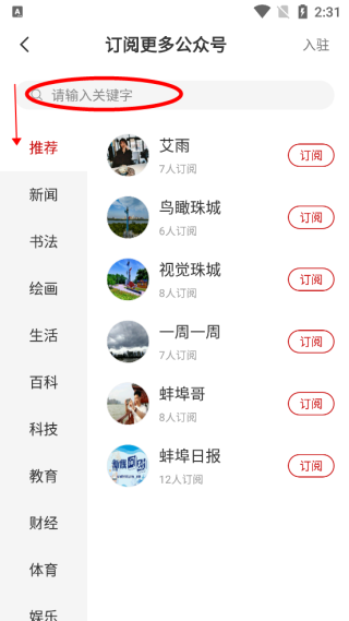 3、可以搜索公众号或是根据分类寻找;