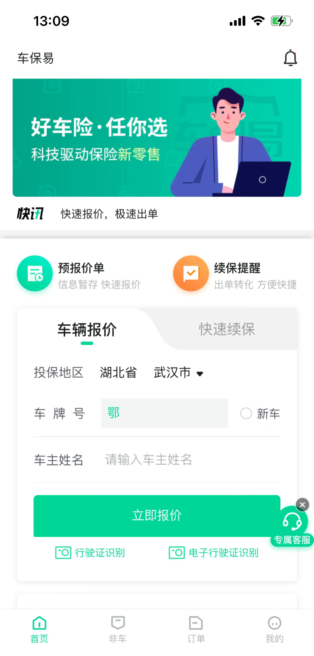 车保易的车险服务已高度成熟,用户仅需输入车牌信息,或上传证件照片,即可快速生成多家保险公司精准报价。依托7x24小时全时段服务,无论昼夜、无问地域,代理人都能实时查询报价。