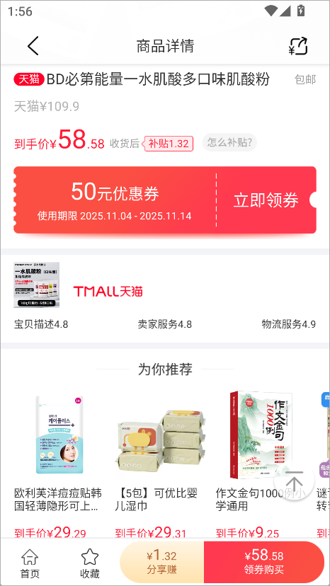 通过省鸭购买淘宝/天猫商品,可领额外补贴,补贴可提现。