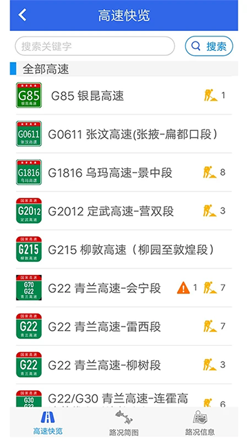 2、这里可以查看甘肃高速的全部路况【高速快览、路况简图、路况信息】