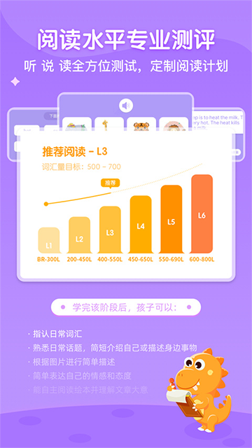 应用采用科学的GRL(Guided Reading Level)分级阅读体系,提供27个不同的难度级别,以适应不同年龄段和英语水平的儿童。