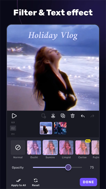 滤镜:使用可调节滤镜,编辑专属视频;