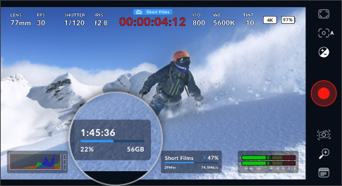 支持通过蓝牙接收时间码,确保多台设备拍摄的素材完美同步,极大简化后期多机位剪辑。