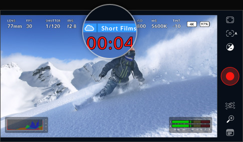 若您已在媒体选项卡中选定用于录制的DaVinci Resolve项目,该项目名称将显示在HUD界面时间码上方。