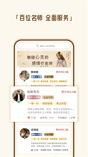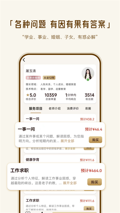 断易堂App是一款专注于传统国学文化的应用工具,致力于传播千年中华优秀文化精髓,传承国学自信。百位深谙东西方智慧学识的专业名师,累计为数百万用户提供精准的人生解读与咨询服务。无论是爱情姻缘、婚姻家庭,还是情感事业、学业求学等人生课题,用户都能在断易堂App获得深刻的洞见与指引。