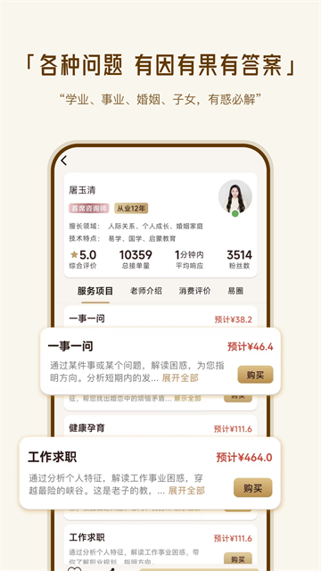 断易堂App是一款专注于传播传统国学文化的应用工具,汇聚了百位专业名师,为用户解答各种人生问题,比如学业、事业、婚姻等。这款App不仅提供精准的咨询,还融入了许多现代元素,比如免费交流和多重优惠活动。最让我觉得贴心的是它的7天服务时长,足够深入探讨问题;还有30天体验期,不满意可以退款,这显示了对用户体验的重视。