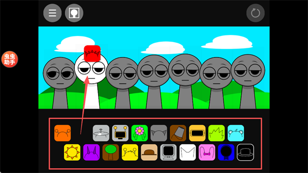 1、打开节奏盒子(热门合集-自由切换)游戏后,玩家可在屏幕下方选择各种装饰道具,自由拖拽到角色头顶进行个性化搭配。