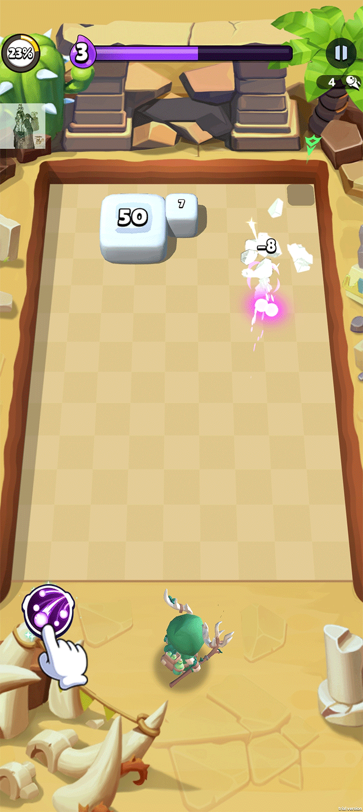 3、当大招能量冷却完毕时,可一键释放,将场上的砖块瞬间清扫殆尽。