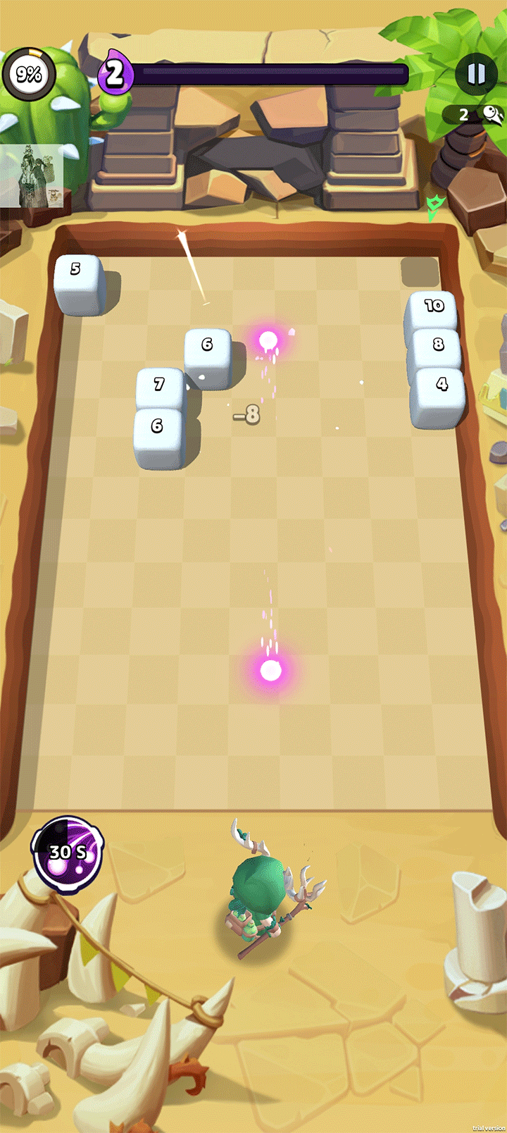 1、轻点屏幕即可发射子弹,逐块击破前方的砖块。