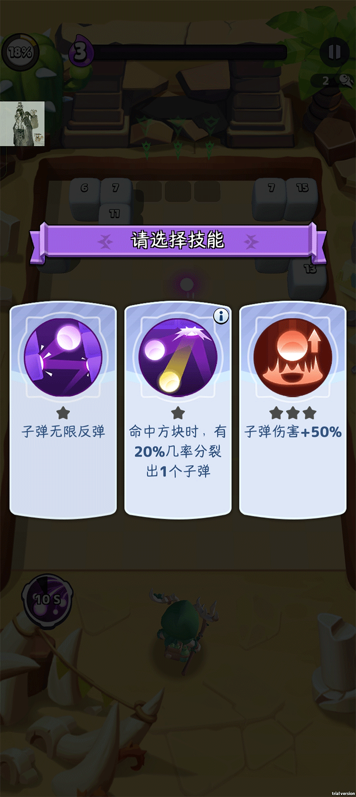 2、每消灭一轮砖块后,系统会随机给予一项全新的技能加成。