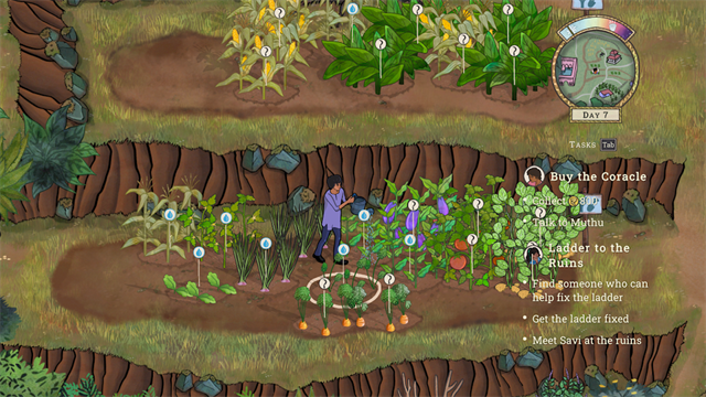 《山间宫殿》是一款特别温馨治愈的游戏,我最近一直在玩。你扮演一个叫维尔的男孩,在90年代印度乡村生活,探索古老宫殿遗址,种菜、做草药、泡茶、做饭,还要给各种奇怪的角色跑腿。游戏的画面是手绘水彩风格,特别美,有一种梦幻的感觉。