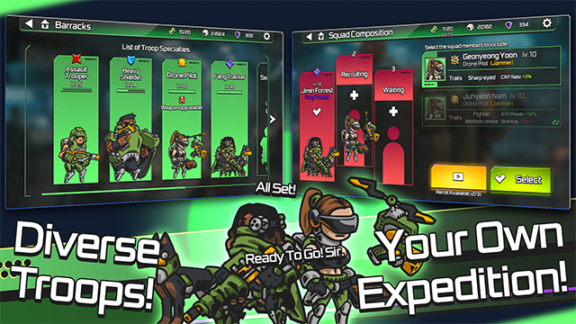 1、进入游戏后,先从列表中挑选想要上阵的部队成员;