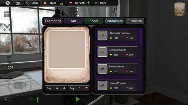 4、在商店里面可以购买到各种类型的蚂蚁。