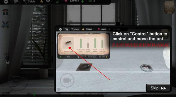 7、点击控制按钮可以用来控制蚂蚁。