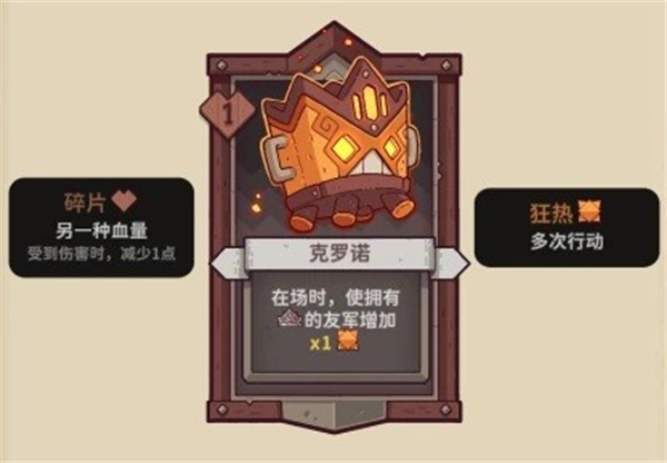 【克罗诺】1碎片,在场时,带有皇冠的友军获得1狂热。