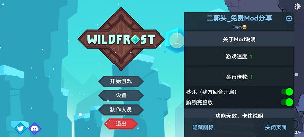 PS:雪居之地手机破解版游戏内提供游戏速度、金币倍数、秒杀及解锁完整版等修改功能。