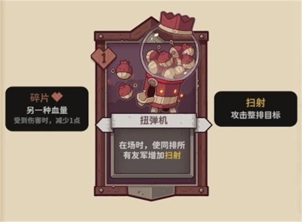 【扭蛋机】1碎片,在场时,同排友军获得扫射。