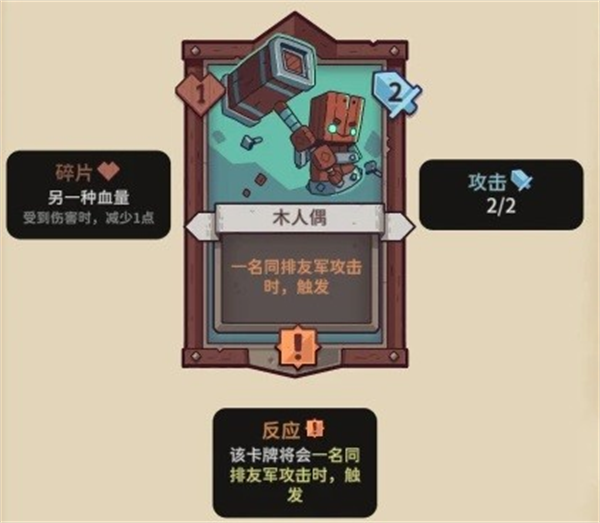 【木人偶】1碎片,2攻击,反应(一名同排友军攻击时,触发)