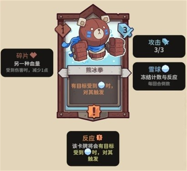 【熊冰拳】1碎片,3攻击,反应(有目标受到雪球时,对其触发)