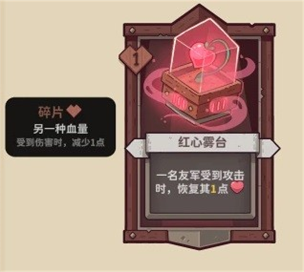 【红心雾台】1碎片,队友受到攻击时,恢复1HP。