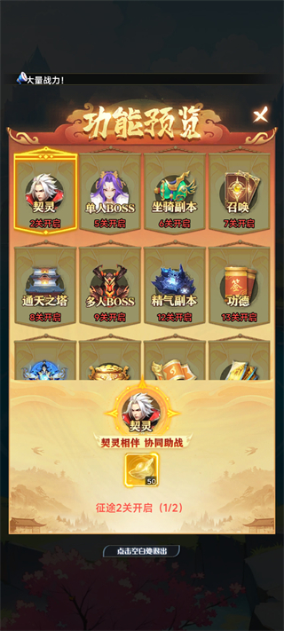 推进主线任务获得各种资源、道具,提升等级快速提升战力。